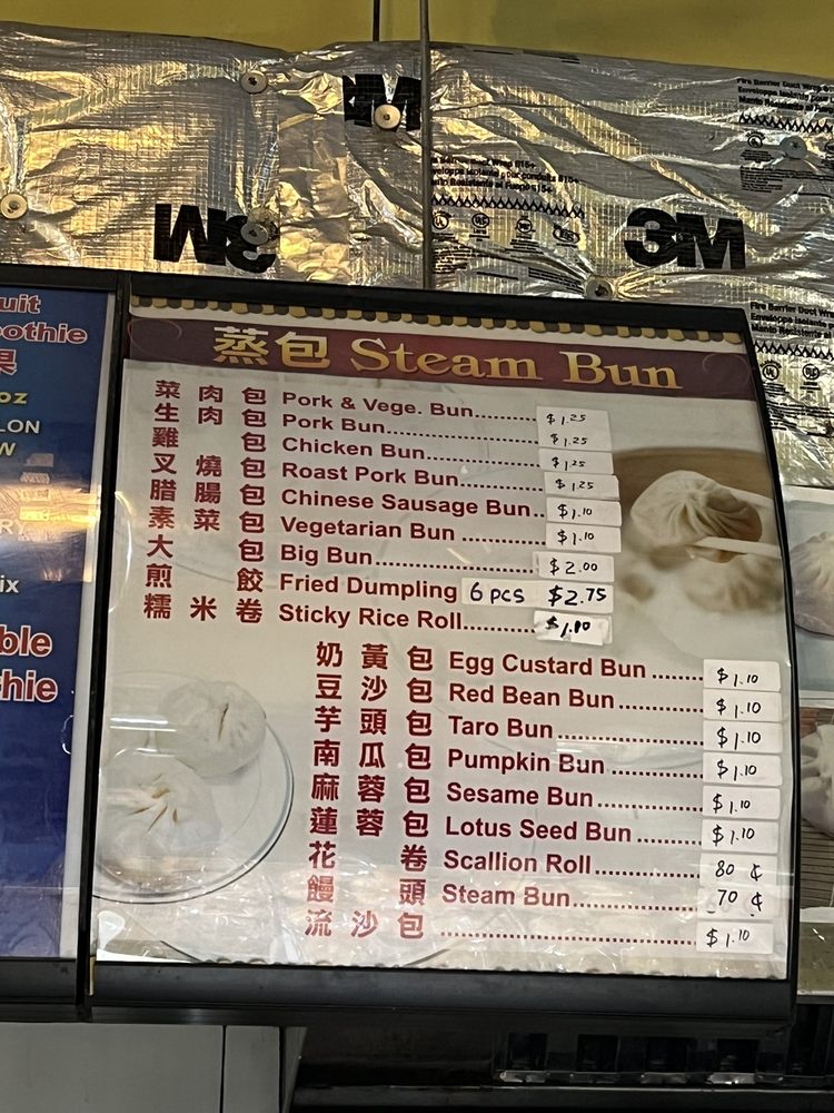 Steamed white flour bun filled with Chinese sausage, quail egg, and pork.
